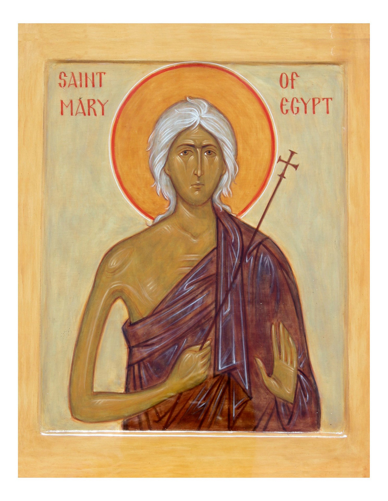 Данас нам Он, кроз своју Цркву, истиче пример једног крхког бића, једне жене која је својом женском снагом у овоме свету зла успела да надвлада зло, и то баш онда када је зло већ ликовало над њом и бацило је у блато, и понизило је. Она је успела уз помоћ Божију, уз помоћ Пресвете Богородице и других Светих и њихових молитава – да се усправи, освести и да опере са себе блато греха и да њен лик засија светлошћу и лепотом неба. Подсетимо се, укратко, борбе те жене коју Црква прославља данас. Њено име је Марија, једна од највећих јунака у историји Цркве. Ми се подсећамо на њен живот сваке године, нарочито ове пете недеље Великог поста. Марија је живела у свету који је био потонуо у зло као што је и данас. Владали су закони зла и греха. Било је популарно постизати световне циљеве. Људи су били заробљени страстима. Била је популарна телесна лепота, док се за духовну лепоту није марило. Успешним се сматрао онај ко успе што више људи да згази и да највише земаљских блага приграби, ко својим изгледом најбоље инспирише на грех. Оно је време потпуно наликовало нашем. Марија је живела у шестом веку у Египту. Као и други робови греха и ђавола, и она се предала греху, јер све је само на грех упућивало: школа, васпитање, све је потонуло у зло и она није могла из чељусти зла да се извуче, па је и сама живела у греху. Догодило се да је путовала са другима у Свету земљу. Ипак, морамо се сетити да у свету постоје два зараћена блока: као што постоји сатана који мами људе на грех, тако, са друге стране, ни Светитељи Божији не спавају. Они прате све нас и гледају да ли је неко негде пао, да нађу начина да му шапну шта треба да чини. Тако ни Бог није заборавио ову Марију. Баш онда када је највише потонула у грех и највише се упрљала, дотакла само дно ада, пакла, баш тада је прогледала и схватила где се налази. Када је у Јерусалиму хтела да приђе Часном крсту Господњем у једном храму, док су сви други прилазили Крсту – она није могла. Она је тада помислила да није можда огладнела, па је малаксала; међутим, када је поново покушала, она је видела да јој нога стаје на пола корака, да не може даље да крочи. Покушала је и трећи пут из све снаге, и осетила да је неко вуче за рамена назад. Погледала је ко – нигде никога није било. Тада је разумела, да поред видљивог постоји и невидљива сила, која се телесним очима не може видети. Погледала је около, чудећи се. Како је у том чуђењу гледала око себе, угледала је икону Пресвете Богородице која гледа право у њу. Почела је да разговара са Богородицом и изнутра јој се расветлило, разбистрило, и схватила је тада да је управо Пресвета Богородица та која јој не дâ да крочи до Крста Сина њеног, на коме је Он за грехе наше пролио Своју крв, да би нас очистио управо од те прљавштине којом је Марија била прекривена. У том моменту сакупила је своје биће, и ми само приближно можемо описати њена осећања тог момента. Одједном, у магновењу, схватила је разлику између себе и других људи; себе и Пречисте Богородице; разлику између себе и Господа Христа који је за наше спасење пострадао, док је она живела у греху – Христа који се борио да победи наше непријатеље, и ње – која се низашта није борила.